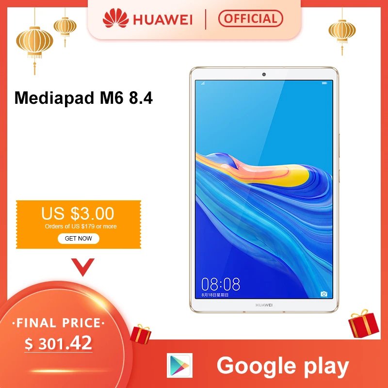 Original Huawei Mediapad M6 Turbo 8.4" Tablet 64GB 128GB Octa Core Kirin980 Android 9.0 Google play 6100mAh WIFI LTE Type-C : Click Here Original Huawei Mediapad M6 10.8 inch 4GB 64GB WIFI LTE Kirin 980 Octa Core Android 9.0 Tablet Type-C Google play GPU Turbo 3.0 : Click Here Global Version HUAWEI MediaPad M5 lite Tablet PC 10.1 inch 3GB 32GB Kirin 659 Octa Core LTE 7500 mAh Android 8.0 Support MicroSD : Click Here
